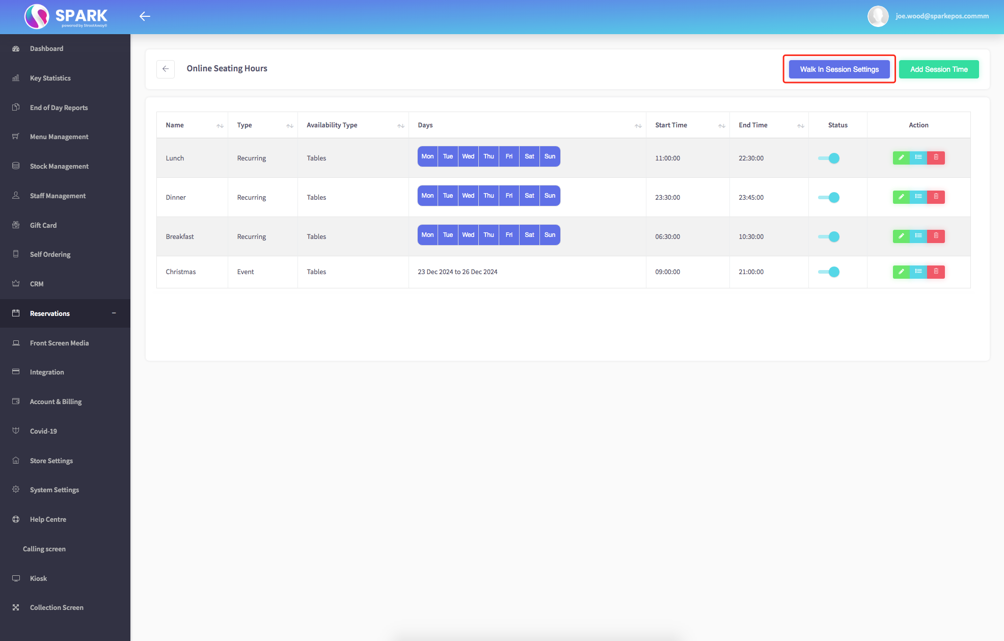 How To Set Walk In Session Times