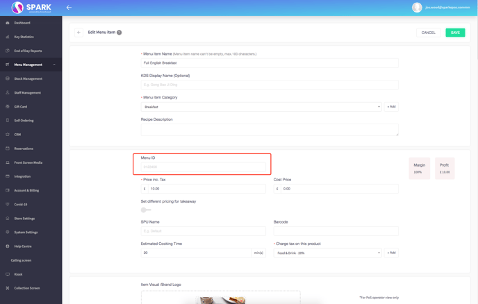 Please press this and enter the Menu ID you have just given one of your items, just to test that it is working, if it doesn’t work for any reason please tell us HERE.